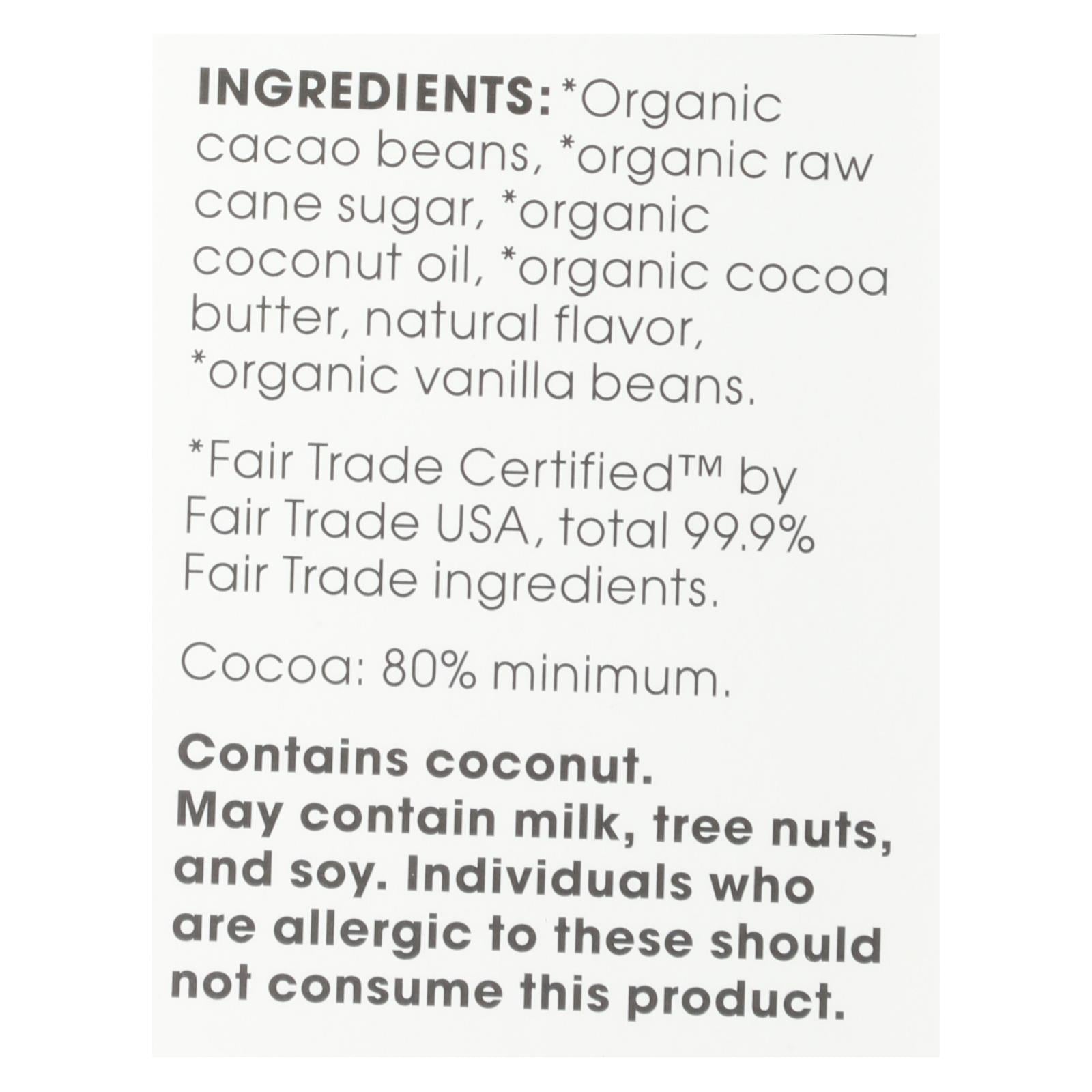 Alter eco - truffle spr dark chocolate - case of 8 - 4.2 oz country of origin : switzerland is gluten free : yes is fair trade item : yes organic : 95%+ organic size : 4.2 oz pack of : 8 selling unit : case ingredients : organic cacao beans;organic raw cane sugar;organic coconut oil;organic cocoa butter;organic butterfat;natural flavor;organic vanilla beans